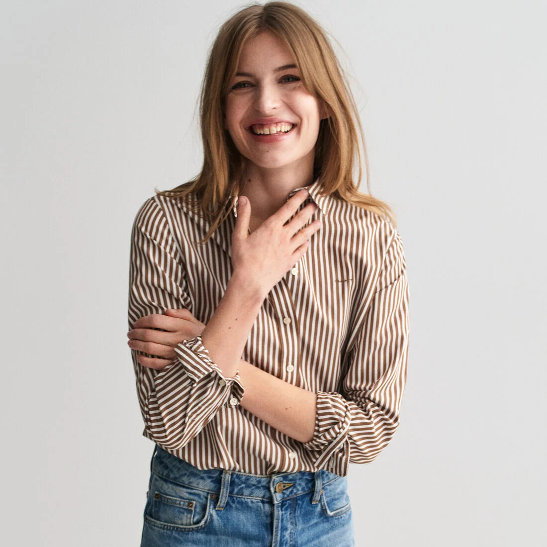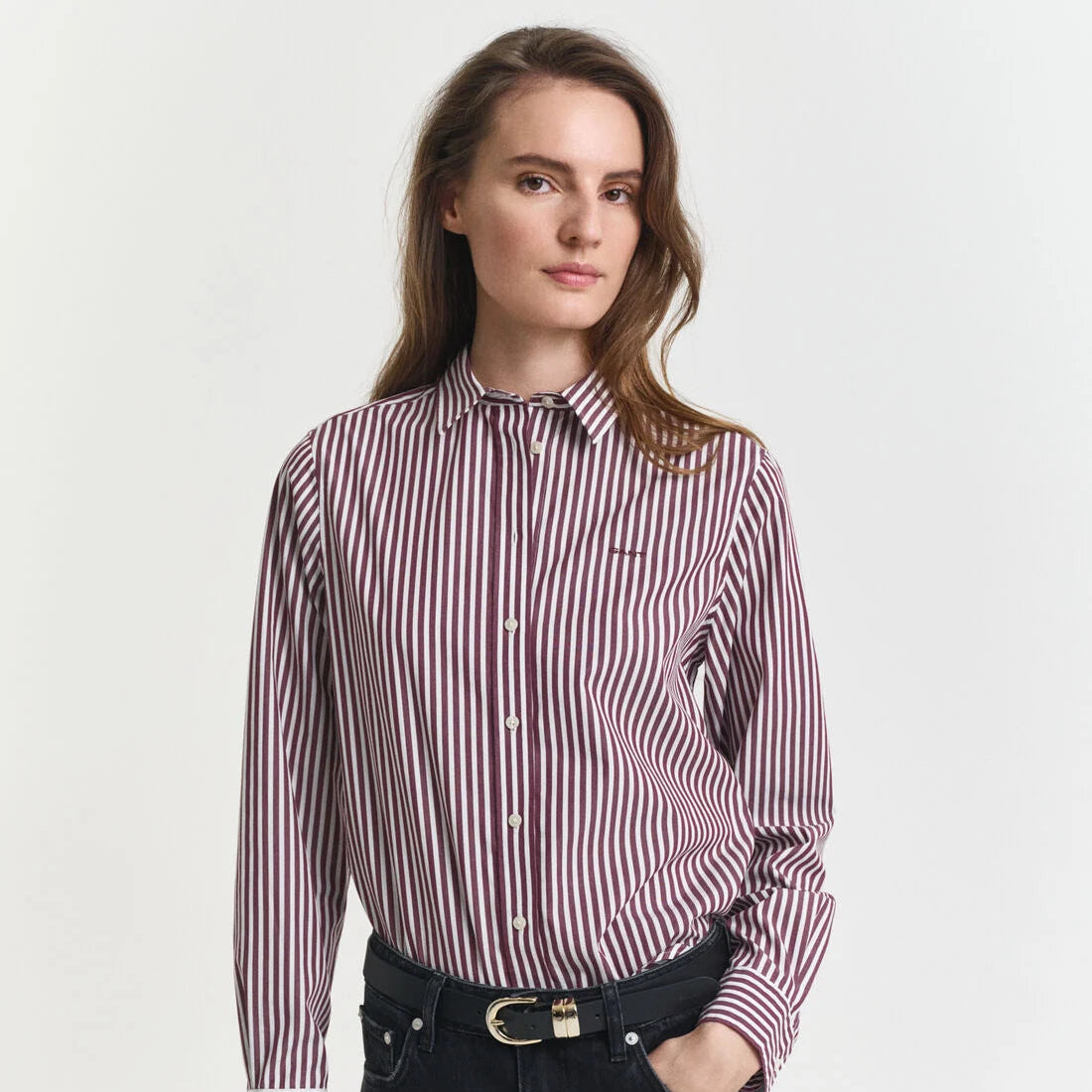 Skjorta med regular fit, gjord i bomullspoplin och med yarn-dyed ränder med en härligt ledig look. Med detaljer som point-krage, rundad fåll, broderi på bröstet och vår klassiska boxpleat med locker loop i ryggen.